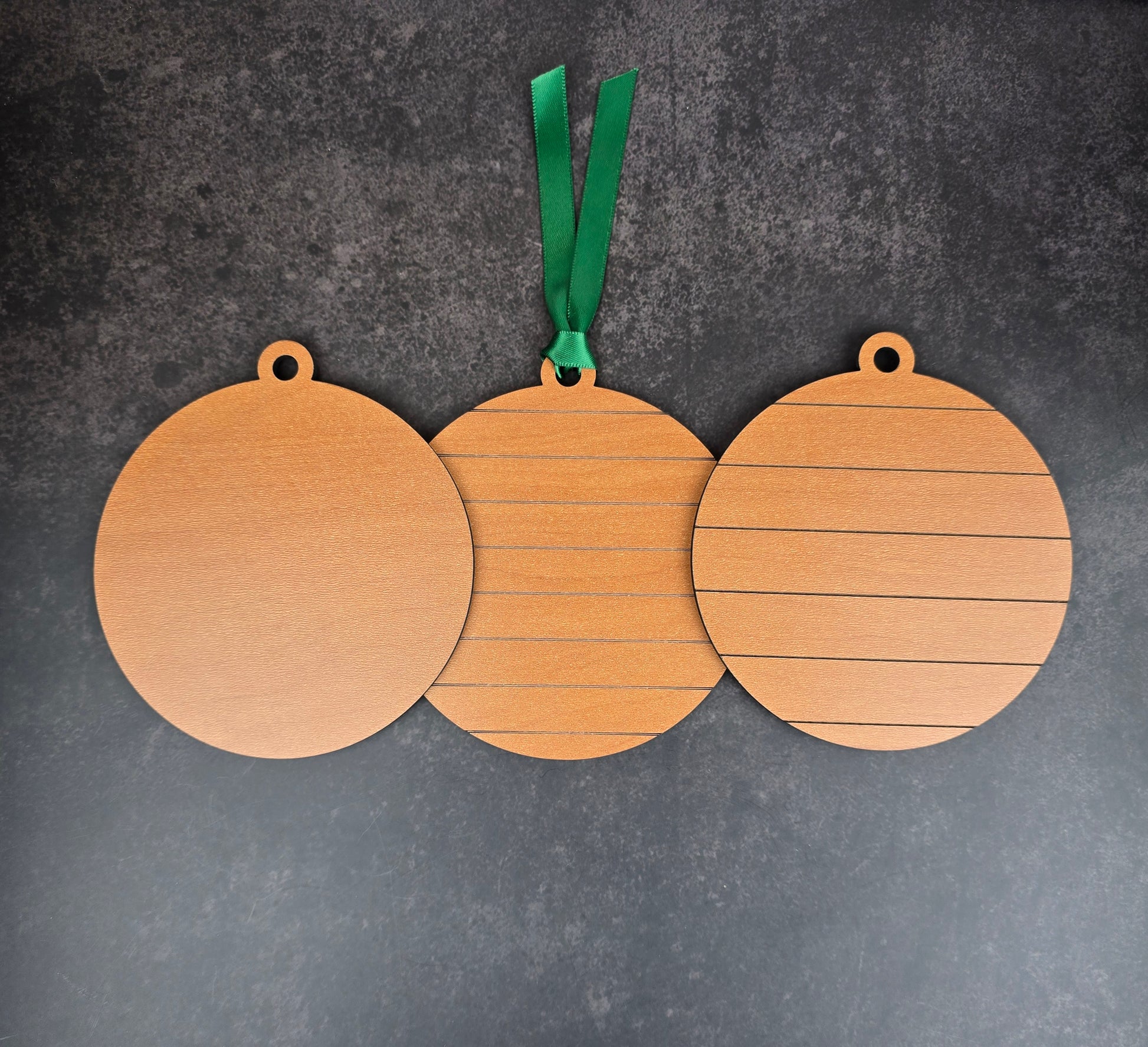 Design your own ornaments! These Blank Circle Ornaments are prefinished and ready for paint, vinyl, UV print, or engraving. Available in Cherry, White, or Maple and your choice of Smooth or Shiplap.